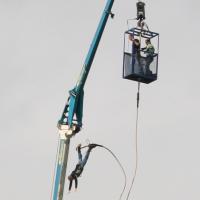 Code: 256f. Depuis le début des années 90 le saut à l'élastique de grue a suscité un grand intérêt de la part des collectivités locales, associations ou comités des fêtes, c'est dans ces années là que nous avons, avec nos collégues de la profession, mis en place le systéme de saut à l'élastique de grue, au début les sociétés de levage étaient un peu réticentes à ce genre de manifestations puis la confiance est venue, à ce jour cela représente 50% de notre activité.