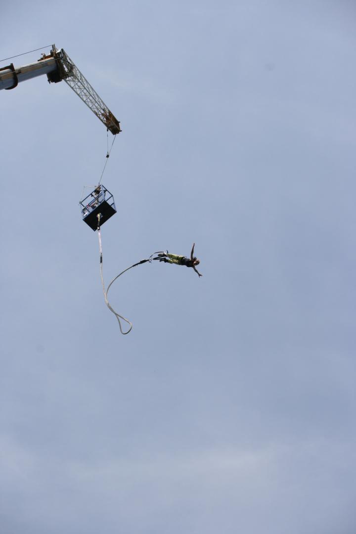 Code: 256f. Depuis le début des années 90 le saut à l'élastique de grue a suscité un grand intérêt de la part des collectivités locales, associations ou comités des fêtes, c'est dans ces années là que nous avons, avec nos collégues de la profession, mis en place le systéme de saut à l'élastique de grue, au début les sociétés de levage étaient un peu réticentes à ce genre de manifestations puis la confiance est venue, à ce jour cela représente 50% de notre activité.